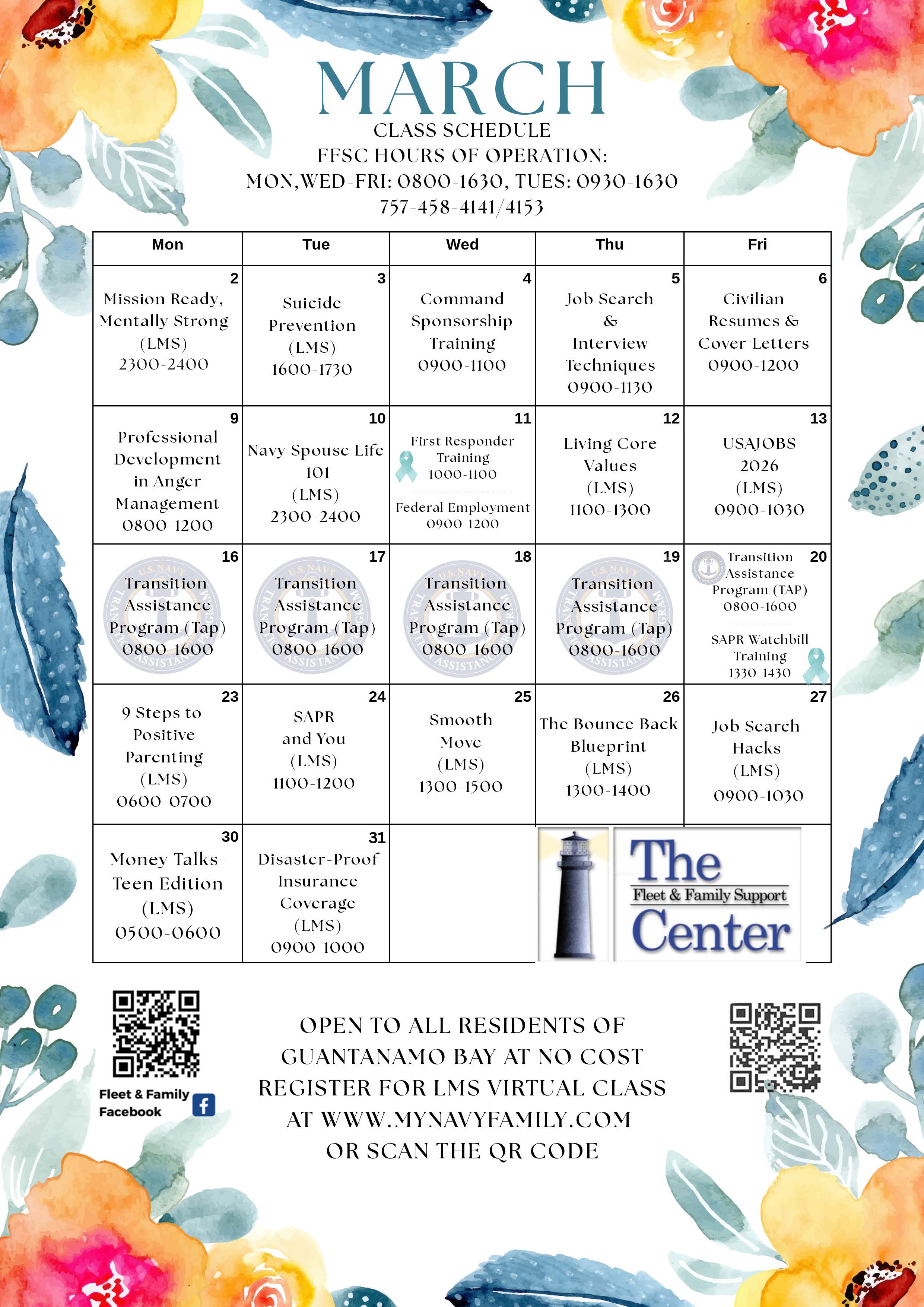 Click to download. March FFSC Class Schedule